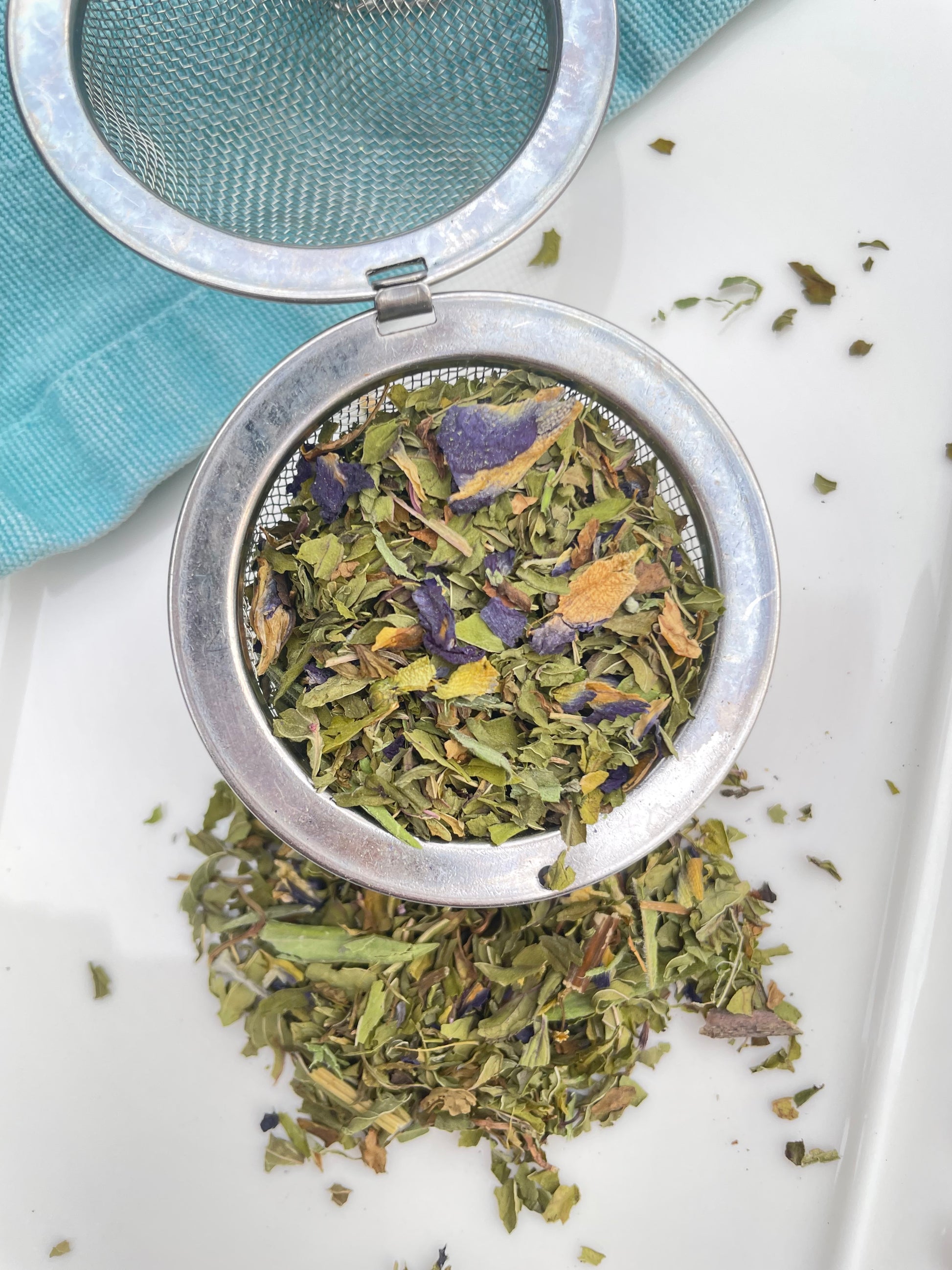 Ingredients: Peppermint, Mountain Mint, Spearmint, Blue Butterfly Pea Flower