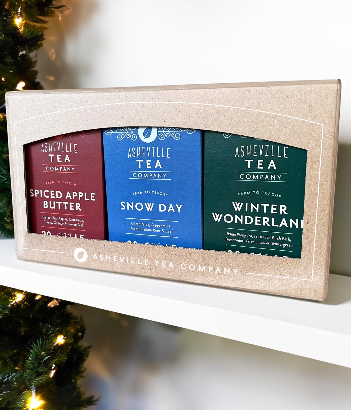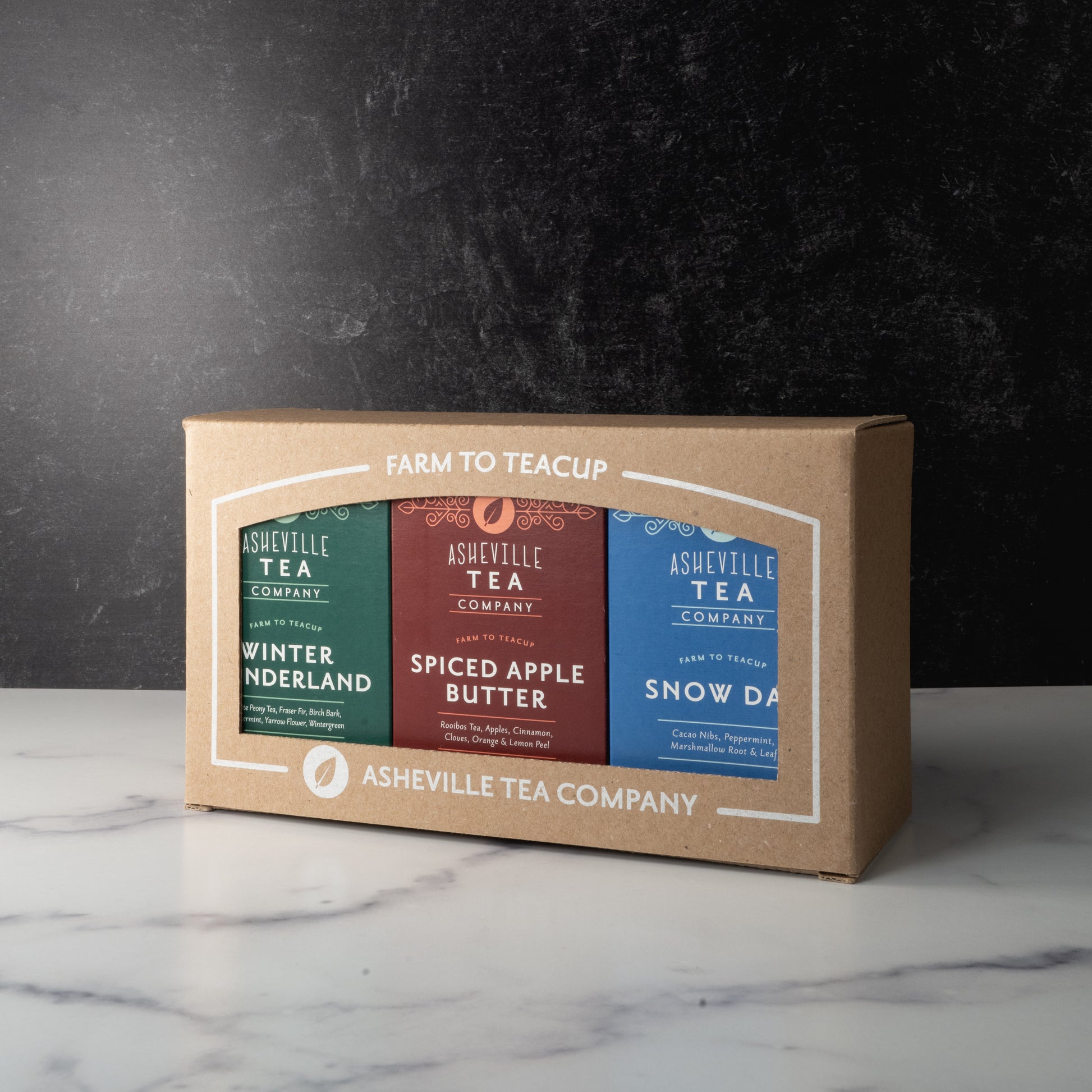 Give the gift of all three of our limited edition festive tea blends, each crafted with regional ingredients to make your winter season bright! The Holiday Trio features Snow Day, Winter Wonderland and Spiced Apple Butter.